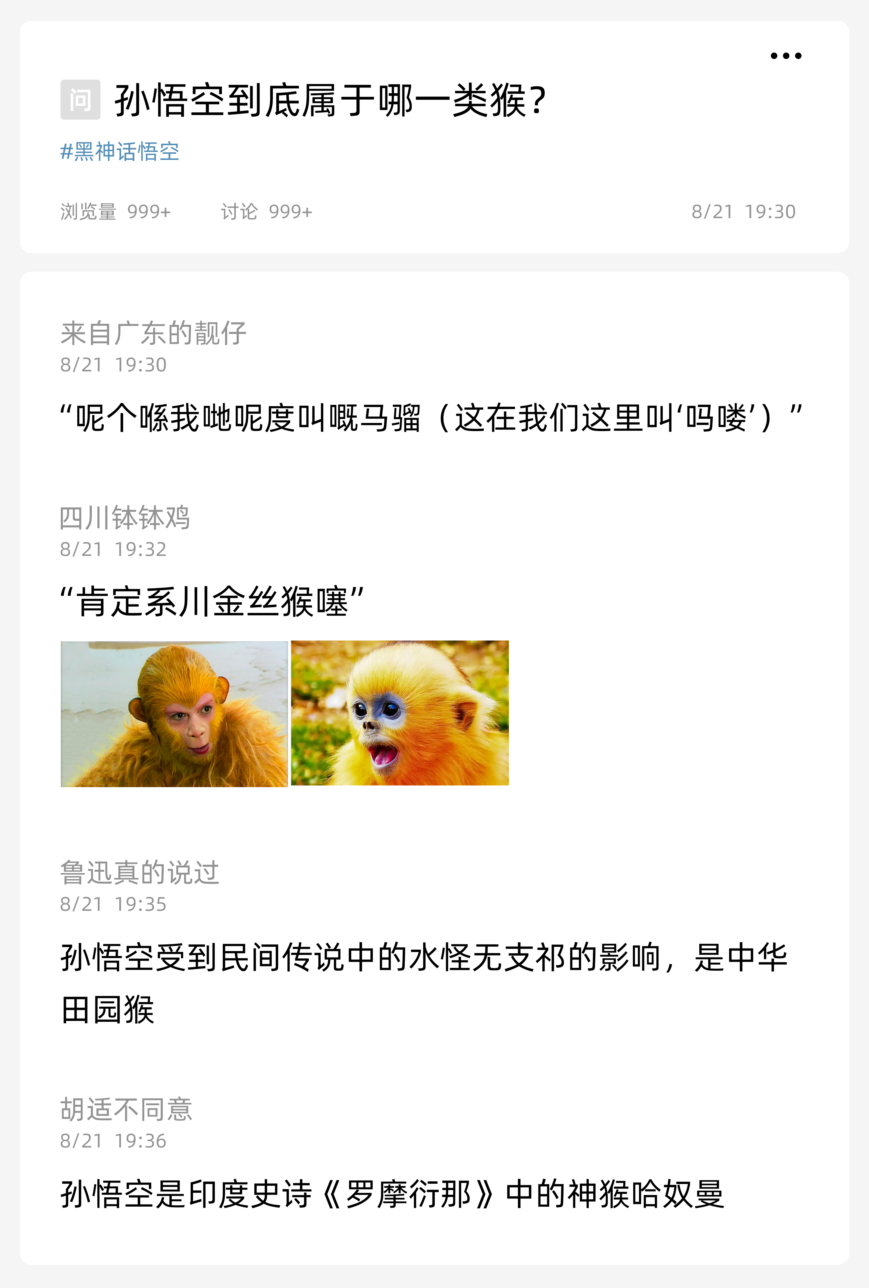 公开资料显示,该游戏取材于四大名著的《西游记》,主角“天命人”以孙悟空为原型,不仅点燃了国人心中的“悟空情怀”,还再次引起了人们对一个问题的好奇:“孙悟空到底属于哪一类猴?”