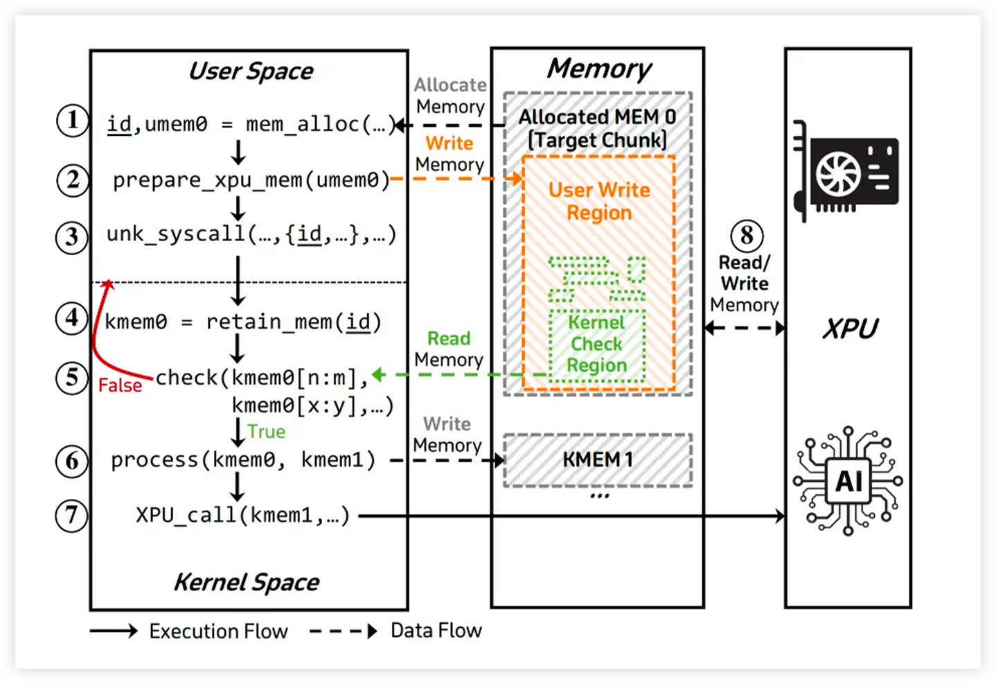 从安全的视角看,目前 XPU 的基础架构与知识积淀往往落后于 CPU 侧,且它们难以被传统的防护与检测手段覆盖。这些不对称差异使得 XPU 在 APT 攻击中成为了价值极高的靶标,我们在 CVE-2021-30983、CVE-2022-32894、CVE-2023-27930 等事件中已经深刻的感受到了这一趋势。