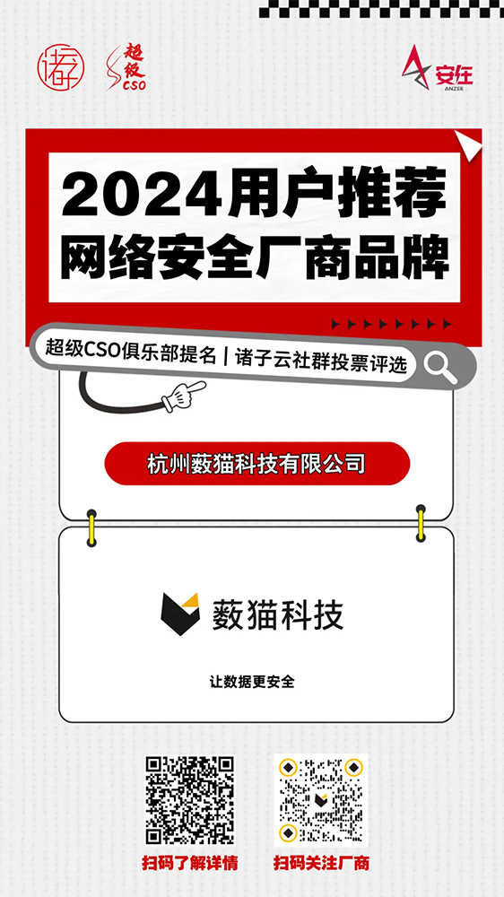 我们衷心感谢安在新媒体的精心组织和诸子云社群对本次评审所展现的公正与专业,同时特别感谢每一位给予薮猫科技信任与支持的CSO和CISO,正是客户的认可和支持,激励我们不断前行。