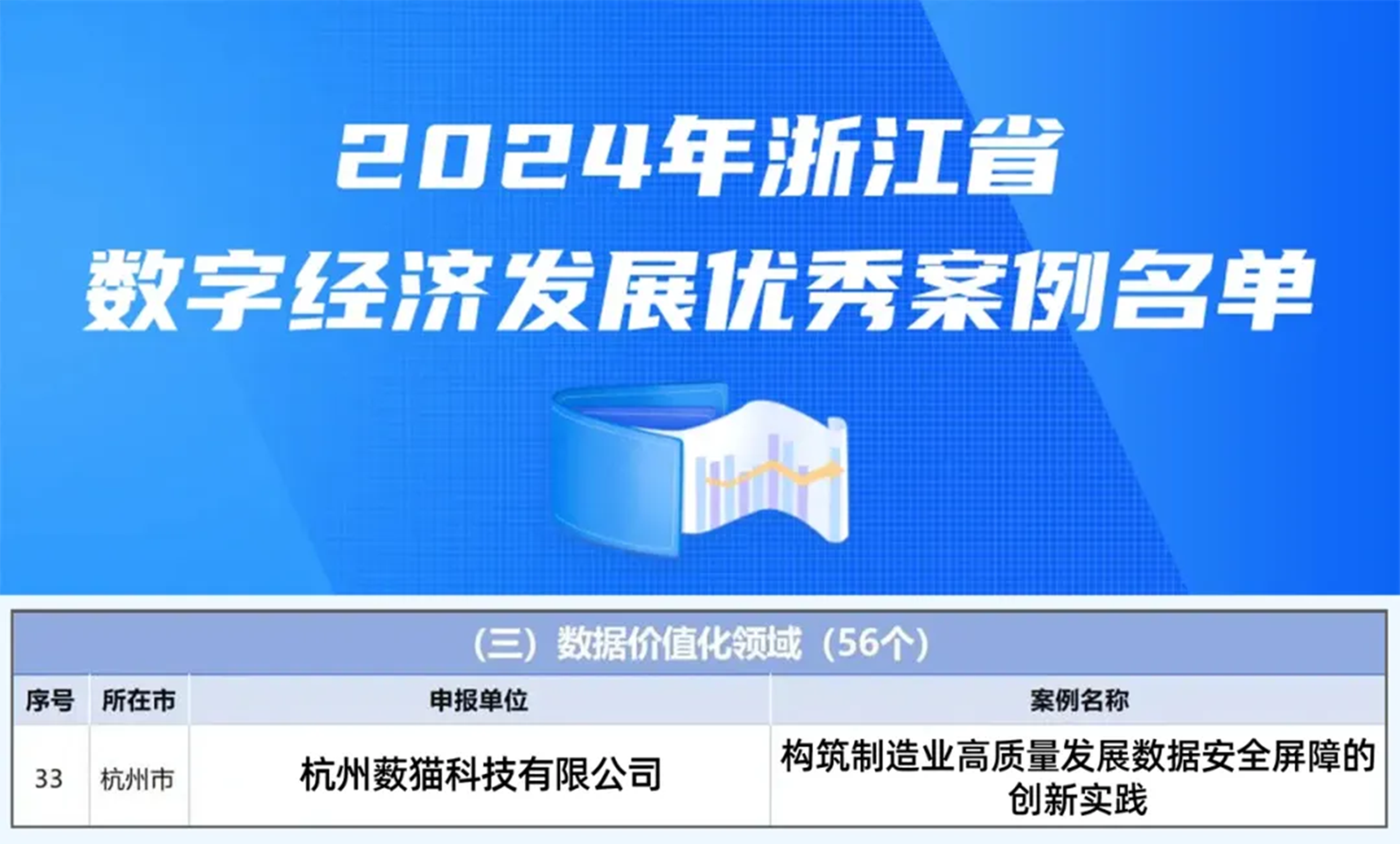 近日,浙江省经济和信息化厅发布了《关于公布 2024 年浙江省数字经济发展优秀案例的通知》,薮猫科技凭借创新实践案例《构建制造业高质量发展数据安全屏障的创新实践》荣登榜单,成功获评 2024 年浙江省数字经济发展优秀案例。这一荣誉不仅体现了薮猫科技在数据安全领域的技术创新能力和行业领先地位,更彰显了公司在推动制造业高质量发展和数字化转型过程中所发挥的重要作用。
