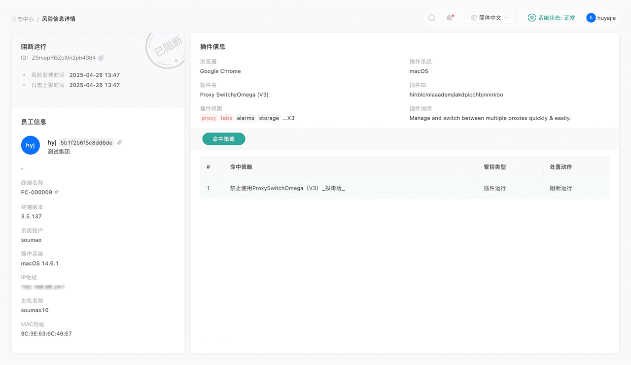 支持远程一键禁用恶意插件,可疑插件即刻失效,同时插件行为日志全程记录,满足审计与合规需求。