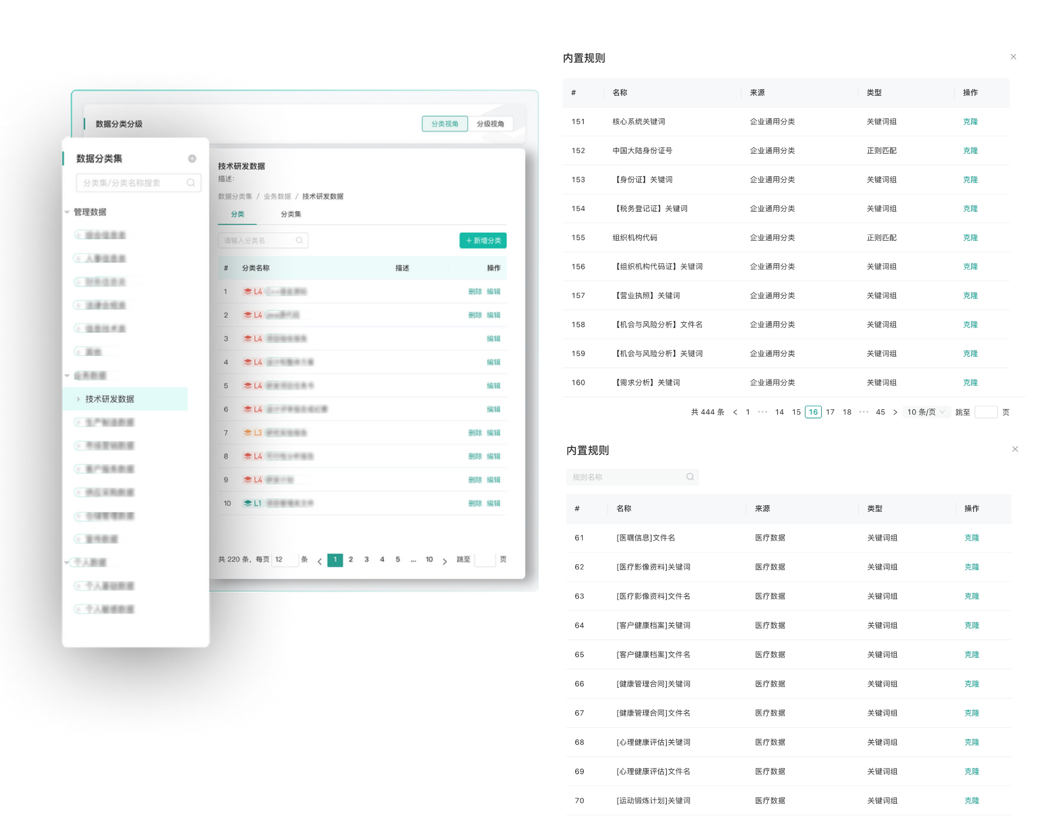 • 《个人信息保护法》《GDPR》以及不同行业的特定合规关键词库