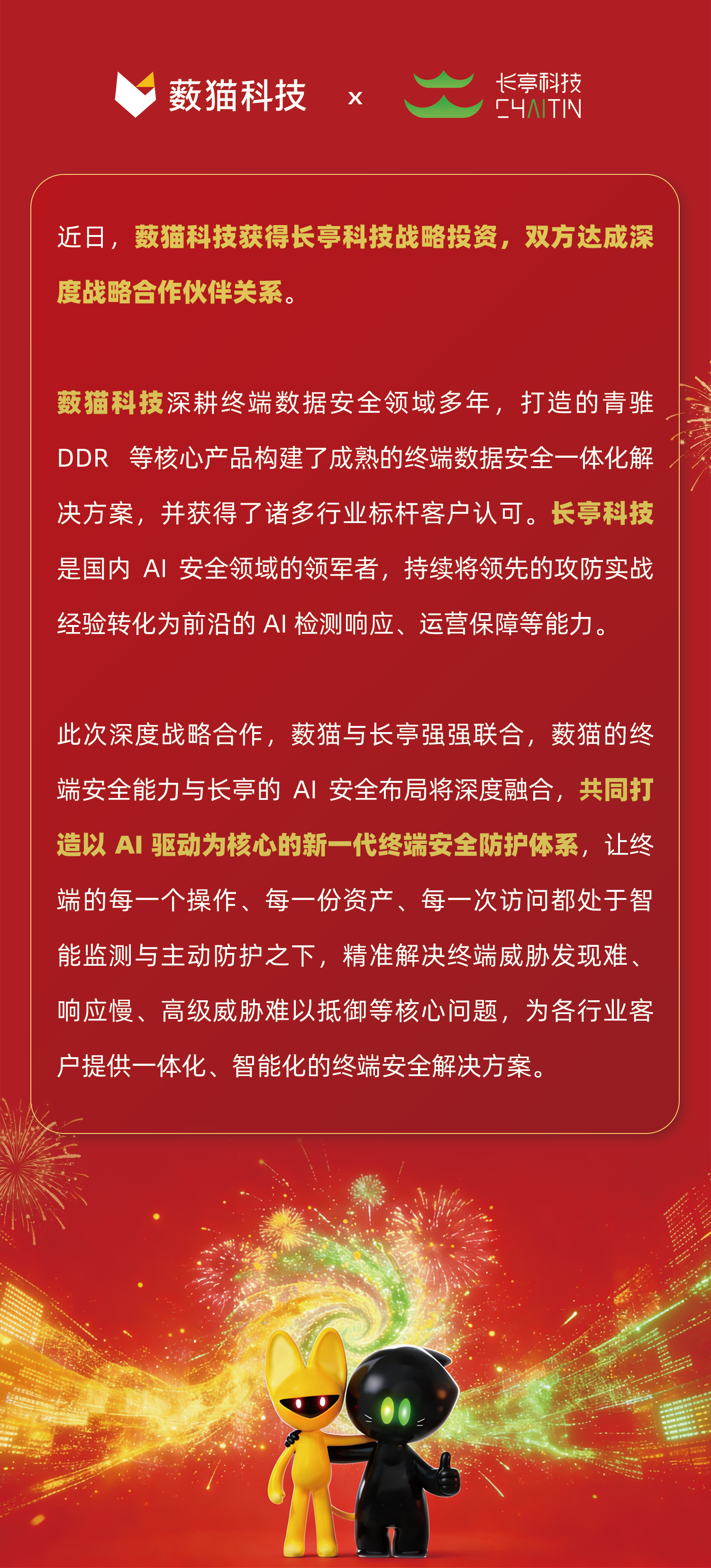 薮猫获长亭战略投资:AI + 终端数据安全的“顶配”合作